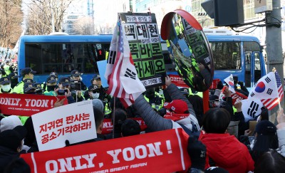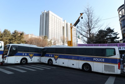 '尹 1심 선고' 출입 통제된 서울중앙지법
