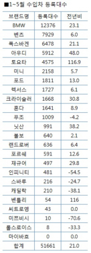 한편 협회는 올해 수입차 판매 규모가 12만대 선을 넘겨 처음으로 국내 자동차 시장 점유율 10%를 돌파하게 될 것으로 전망했다.