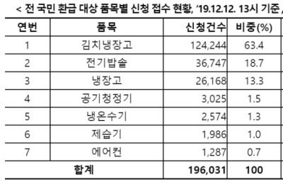 그는 "으뜸효율 가전 환급사업을 통해 국내 가전제품 소비를 촉진하고, 전반적인 제조업 경기 회복에 기여하는 한편, 국가 전체적으로도 고효율 제품 보급을 통해 에너지도 절약할 수 있다"고 강조했다. 한편 으뜸효율 가전 환급사업은 지난 3월 23일 시행 이후 환급신청 건수가 이미 100만 건을 돌파했고 1500억원의 1차 추경 예산이 거의 소진됐다.