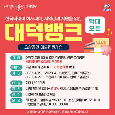 최충규 대덕구청장은 "어린이날을 맞아 다채로운 행사를 준비했다"며 "온 가족이 함께 참여해 행복한 추억을 만들 수 있길 바란다"고 말했다.