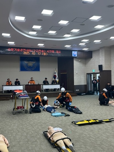 [천안=뉴스핌] 오영균 기자 = 천안서북소방서 직원들이 오는 25일에서 26일까지 태안소방서에 열리는 제38회 전국소방기술경연대회 도 대표 선발전을 앞두고 훈련을 하고 있다. 천안서북소방서에서는 주영 소방위, 김종호 소방교, 전용인․김동연․김정환 소방사가 대표 출전한다. [사진=천안서북소방서] gyun507@newspim.com