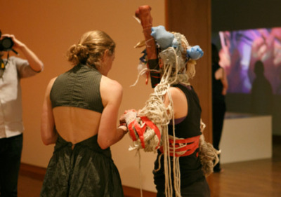 일본 규슈대학교의 '텍스타일 카토그래피: 실로 그린 지도'(2025)는 손바닥에 쏙 들어오는 사각의 섬유작품들을 길게 늘어뜨려 파노라마처럼 넓게 펼쳐놓은 프로젝트다. 규슈대 APECV 리서치그룹은 섬유공예를 이야기 도구로 삼아 전세계인이 자유롭게 참여하는 연구 프로젝트를 시행했다. 아프리카 아메리카 오세아니아 유럽 아시아 등 다양한 지역의 대학, 예술단체, NGO 등 29개 단체의 참여자 6000여 명은 자신이 좋아하는 것이나 들려주고 싶은 이야기를 섬유공예를 통해 자유롭게 표현하고 있다. 사각의 작은 직물에는 수를 놓거나, 그림을 그려넣은 것에서부터 단추 달기, 뜨개질 등 각양각색의 기법으로 내면을 표현한 '소박한 예술'이 이어진다. 전 지구적 사람들이 다양한 방식으로 표현한 자기 서술을 통해 현대의 인간과 사회를 세심히 통찰할 수 있다.