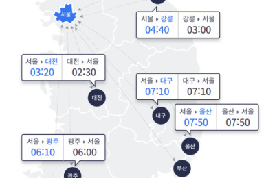 반대로 서울요금소에서 각 도시까지 소요 시간은 부산,울산 5시간, 대구 4시간 20분, 강릉 3시간 50분, 목포 3시간 49분, 광주 3시간 21분, 강릉 3시간 50분, 대전 1시간 40분이다.