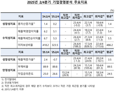 비제조업 분야 매출액증가율은 전년 동기 대비 7.9%p 낮아진 마이너스(-)0.2%, 총자산증가율은 4.1%p 감소한 0.8%로 확인됐다.