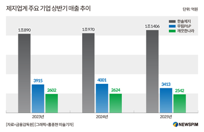 이는 글로벌 경기 둔화로 인한 백판지 수출 시장 부진과 단가 하락 때문으로 풀이된다. 2분기 기준 국내 산업용 포장지(백판지) 시장의 내수 출하량은 6.3% 줄었다. 수출 출하량도 6.9% 감소하는 등 전반적인 시장 침체가 이어지고 있다.