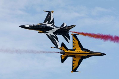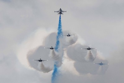 | [서울=뉴스핌] 이길동 기자 = 제 1회 방위산업의 날(7월 8일) 제정을 기념해 시민 참여 페스티벌이 열린 12일 서울 서초구 반포한강공원 일대에서 공군 특수비행팀 블랙이글스가 에어쇼를 펼치고 있 다.2025.07.12gdlee@newspim.com |