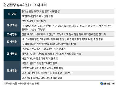 이후 총리실은 이달 21일까지 49개 중앙행정기관별 조사 TF를 구성, 내년 2월 13일까지 내부 인사조치를 마무리한다는 계획을 발표했다.