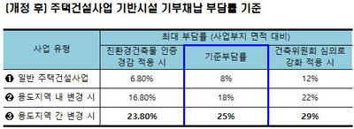 과도한 기부채납 탓에 사업 진행이 더뎌진다는 지적이 이어지자 서울시는 올 초 재개발 조합의 임대주택 매입 금액을 기본형 건축비의 80%에서 정한다는 내용의 개정 조례를 공포했지만, 재건축은 포함되지 않았다.