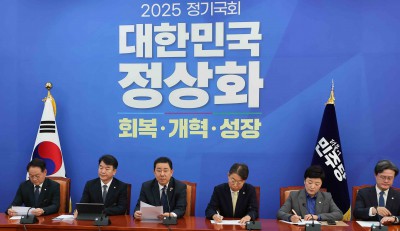 | [서울=뉴스핌] 윤창빈 기자 = 김병기 더불어민주당 원내대표가 20일 서울 여의도 국회에서 열린 정책조정회의에서 모두발언을 하고 있다. 2025.11.20 pangbin@newspim.com |