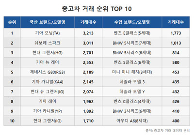 국내 최대 직영중고차 플랫폼 기업 K Car(케이카)는 국내 중고차 시장에서 유통되는 출시 10년 이내 740여개 모델을 대상으로 평균 시세를 분석한 결과, 대형차 시세는 전월 대비 1.1% 하락할 것으로 보이는 반면 경차는 1% 상승할 것으로 27일 전망했다.