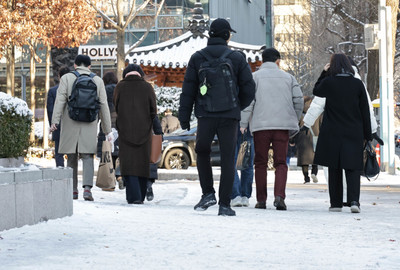 운동화를 신고 나온 40대 직장인 김모씨는 "동네 언덕이 많아 눈이 왔다길래 미끄러울까봐 운동화를 신었는데 신발이 다 젖어서 발이 아프다"며 "회사에 가서 말려야겠다"고 했다.