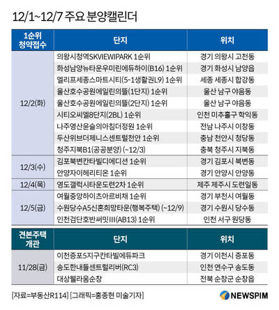 [서울=뉴스핌] 송현도 기자 = 6일 부동산R114에 따르면 12월 둘째 주에는 전국 10개 단지 총 1만 2가구(일반분양 3646가구)가 공급된다.