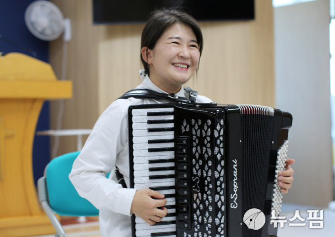 | [서울=뉴스핌] 북송 재일교포 출신 부모를 둔 손이슬 씨는 자신이 좋아하는 손풍금 연주를 통한 재능기부로 세상을 밝히고 싶다고 말한다. [사진=남북하나재단] 2025.12.14 |