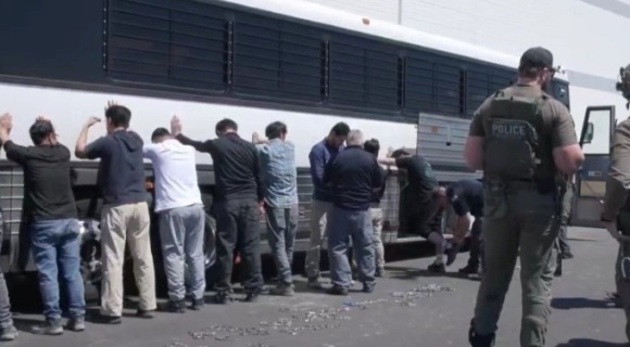 | 2025년 12월 19일, 미국 캘리포니아주 메카에서 진행된 이민 단속 중, 미 이민세관단속국(ICE) 요원들이 한 식료품점 주차장에서 농업 종사자들의 신원 확인 서류를 검사하고 있다. [사진=로이터 뉴스핌] |