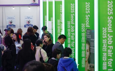 | [서울=뉴스핌] 류기찬 기자 = 20일 오후 서울 강남구 세텍 서울무역전시장에서 열린 '외국인 취업·채용 박람회'를 찾은 구직자들이 채용공고 게시대를 살펴보고 있다. 2025.11.20 ryuchan0925@newspim.com |