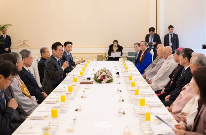 또 강 대변인은 "종교 지도자들은 이 대통령이 혐중과 혐오 문제를 지적한 것을 높이 평가했고, 이 대통령은 민생 문제나 한반도 평화 문제 등 우리 사회의 중요한 화두가 되는 일에 종교계가 사회 지도자로 나서 올바른 방향을 이야기해 주시길 당부했다"고 말했다.