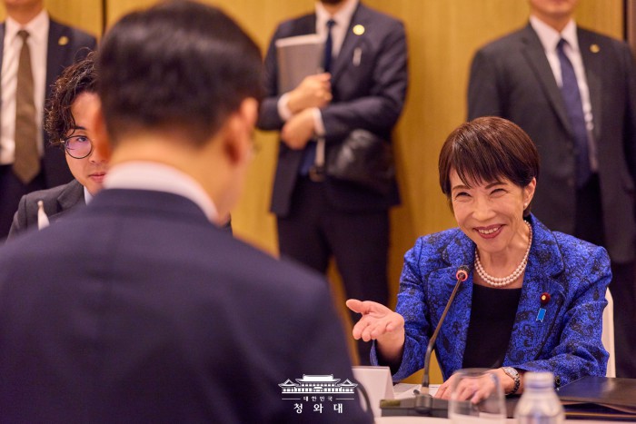 이에 다카이치 총리는 "조금 전 대통령님과 일한 관계의 전략적 중요성에 대해 공통된 인식 하에 심도 있는 논의를 가질 수 있었다"며 "대통령님과 함께 일한관계를 전진시키면서 양국이 지역의 안정을 위해 공조해 역할을 다 해 나가야 한다는 생각을 다시금 가졌다"고 말했다.