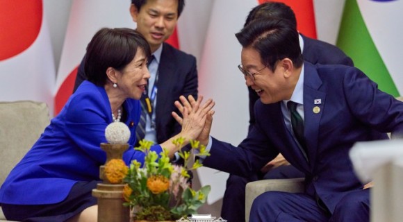 | 환하게 웃으며 악수하는 이재명 대통령과 다카이치 사나에 일본 총리 [사진=로이터 뉴스핌] |