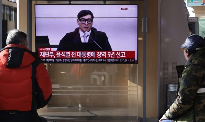 백 재판장이 선고문을 읽어 내려가기 시작하자 윤 전 대통령은 허공을 바라봤다. 이따금 고개를 푹 숙여 책상을 내려보거나 눈을 깜빡였다.