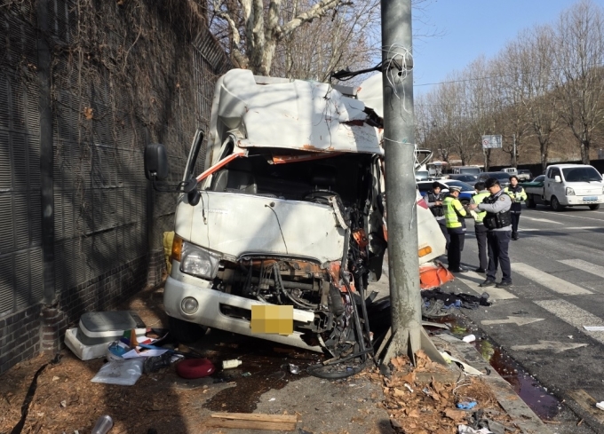 [인천=뉴스핌] 홍재경 기자 =19일 오후 1시 30분께 인천시 남동구 만수동 도로에서 30대 남성 A씨가 몰던 4.5t 화물차가 신호등을 들이받았다.