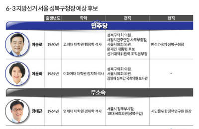 이에 맞서 최선 전 서울시의원, 이성희 전 서울시의원, 배봉수 전 강북구의원 등이 잠재적 경쟁자로 거론된다.