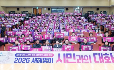 이날 최민호 시장은 행정수도 완성을 중심으로 한글문화도시와 스마트도시, 정원도시, 박물관도시 등 5대 비전과 관련한 현안 사업을 설명했다.