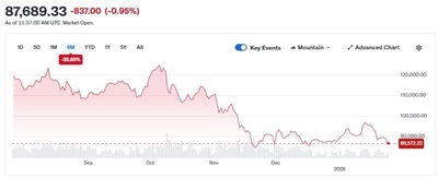[서울=뉴스핌] 고인원 기자= 비트코인 가격이 27일 8만8000달러 부근에서 방향성을 찾지 못한 채 박스권 흐름을 이어가고 있다. 이번 주 미 연방준비제도(Fed)의 통화정책 결정과 대형 기술주 실적 발표를 앞두고 투자자들의 관망 심리가 짙어지면서, 암호화폐 시장 전반이 조심스러운 분위기를 보이고 있다.