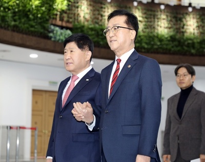 손 맞잡은 대전·충남 시도의장 "통합의회 권한 확보 위해 합심"