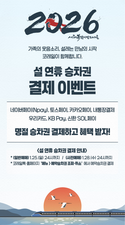 한편 코레일은 설 연휴 승차권 불법 거래 방지를 위해 홈페이지와 모바일 앱 '코레일톡'에 '암표제보방'을 상시 운영한다. 또 '미스터리 쇼퍼(암행 단속원)' 방식을 도입해 온라인 중고거래 플랫폼 암표 판매자를 적발하는 등 암표 근절에 주력하고 있다.