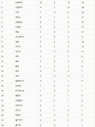 노르웨이는 22일 오전(한국시간) 현재 금메달 18개, 은메달 11개, 동메달 11개를 기록하며 압도적인 선두를 유지했다. 남은 금메달 5개가 모두 미국으로 향한다 해도 2위 미국(금 11·은 12·동 9)을 능가한다.