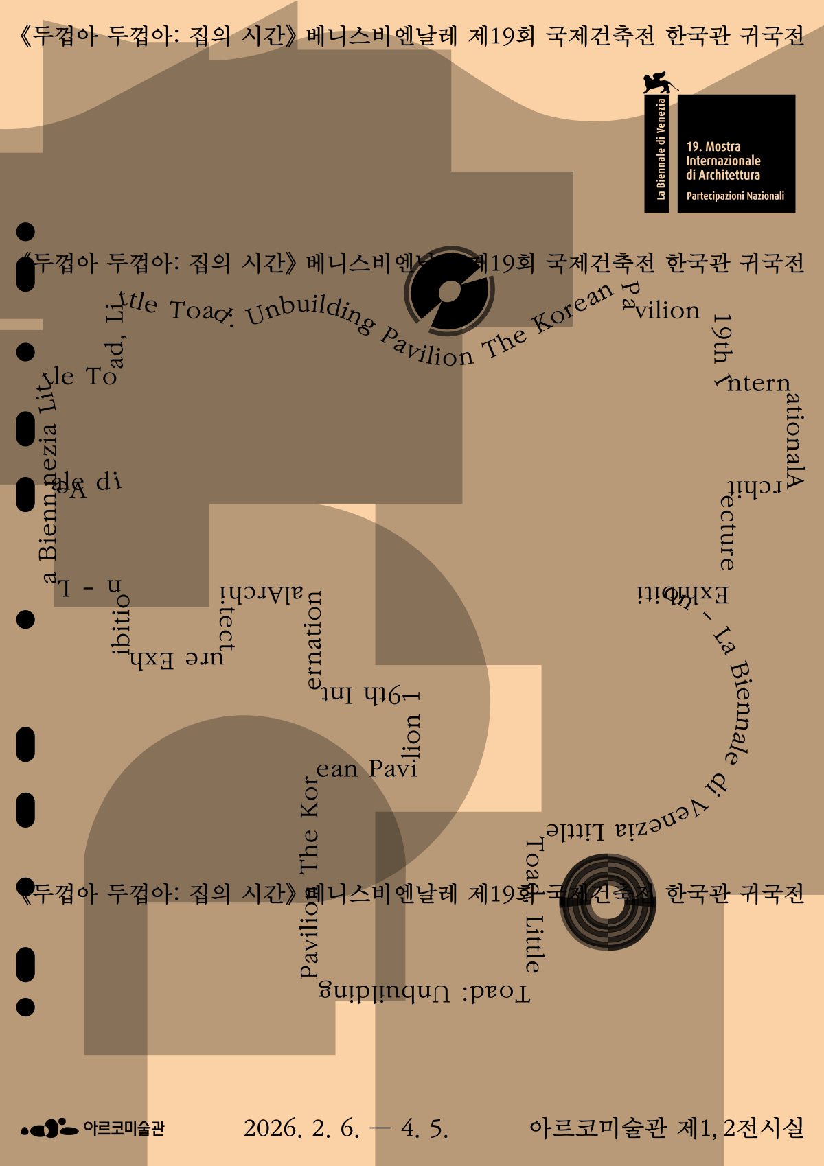 올해 첫 전시는 제19회 베니스비엔날레 국제건축전 한국관 귀국전인 '두껍아 두껍아: 집의 시간(2.6~4.5)'이다. 건립 30주년을 맞은 한국관 건축을 '집'의 관점에서 재해석하며 장소특정적 설치 작업의 구성 과정과 건축적 쟁점을 다루는 포럼을 총 8회 진행한다.
