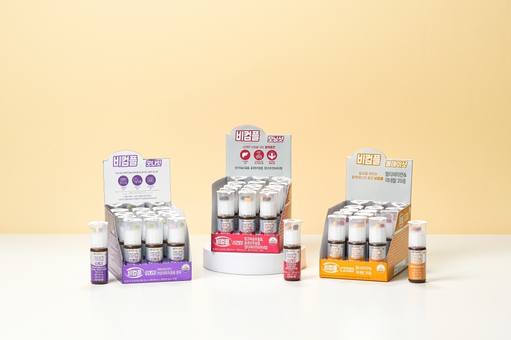 '비컴플 올데이샷'은 하루 에너지 밸런스를 위해 20종의 기능성 원료를 한 병에 담은 프리미엄 멀티비타민 제품으로, 활력 부스터와 항산화 등 기능성을 충족하며, 정제 2정과 시트러스 맛 액상이 결합된 이중 제형을 갖췄다. 에너지 대사에 필요한 고함량 비타민B군을 중심으로, 비타민 C·E와 미네랄 조합을 통해 항산화 및 건강관리에도 도움을 준다.