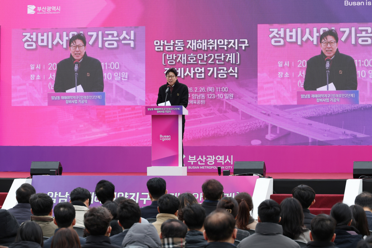 [부산=뉴스핌] 남동현 기자 = 부산시는 26일 오전 11시 서구 암남동 등대로 일원 남항체육공원(족구장)에서 '암남동 재해취약지구(방재호안2단계) 정비사업' 기공식을 개최했다고 밝혔다.