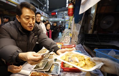 자양전통시장에서 전 구입하는 오세훈 서울시장