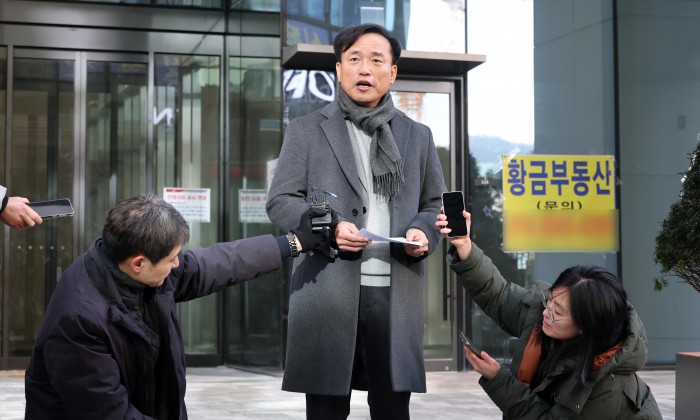 [과천=뉴스핌] 최지환 기자 = 김종철 방송미디어통신위원회 위원장 후보자가 4일 오전 경기 과천시 한 오피스텔에 마련된 인사청문회 준비 사무실로 출근하며 지명 소감을 밝히고 있다. 2025.12.04 choipix16@newspim.com