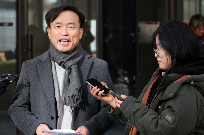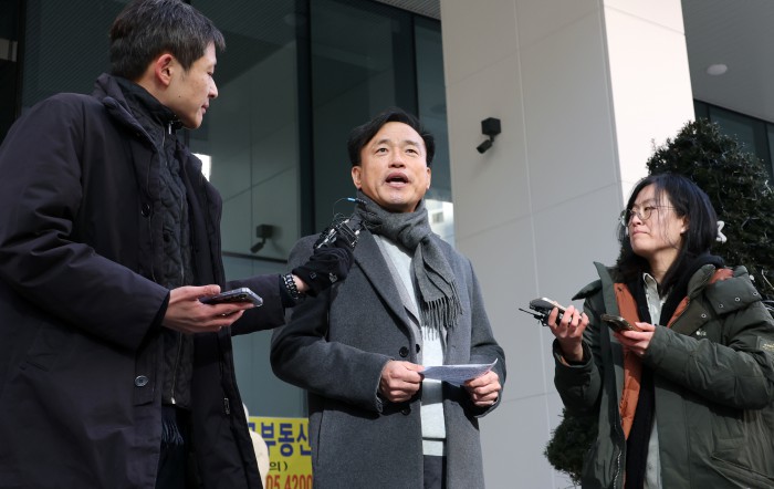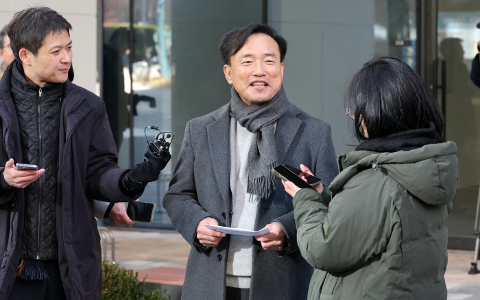 [과천=뉴스핌] 최지환 기자 = 김종철 방송미디어통신위원회 위원장 후보자가 4일 오전 경기 과천시 한 오피스텔에 마련된 인사청문회 준비 사무실로 출근하며 취재진 질문에 답변하고 있다. 2025.12.04 choipix16@newspim.com