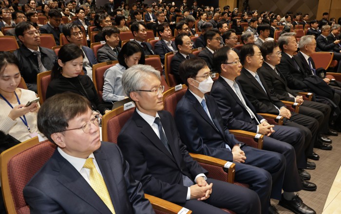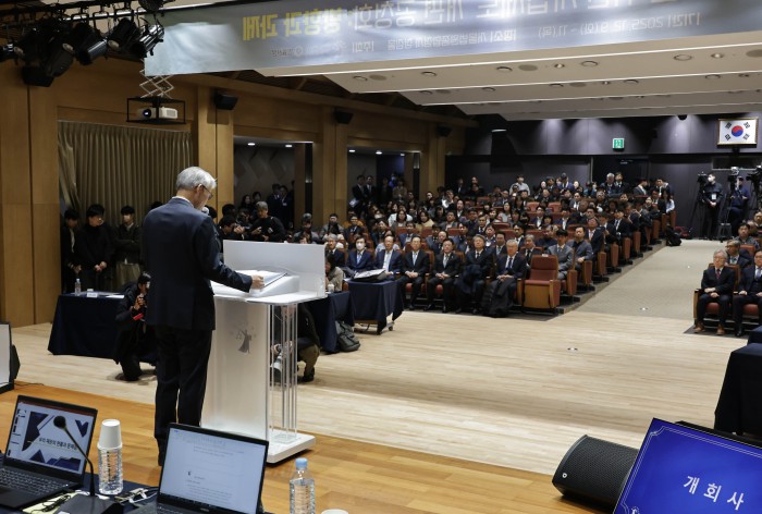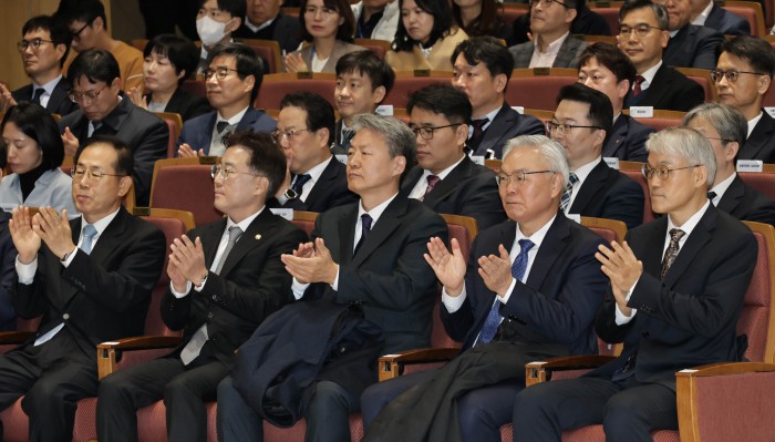 [서울=뉴스핌] 양윤모 기자 = 9일 서울 서초구 서울법원종합청사 청심홀에서 열린 '국민을 위한 사법제도 개편' 공청회 참석자들이 천대엽 법원행정처장의 개회사를 듣고 있다.