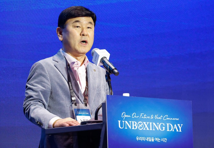 [서울=뉴스핌] 류기찬 기자 = 노삼석 한진 대표이사가 9일 오후 서울 용산울드래곤시티 그랜드볼룸에서 열린 ‘한진 언박싱데이 2025(Unboxing Day 2025)’에서 축사를 하고 있다. 2025.12.09 ryuchan0925@newspim.com