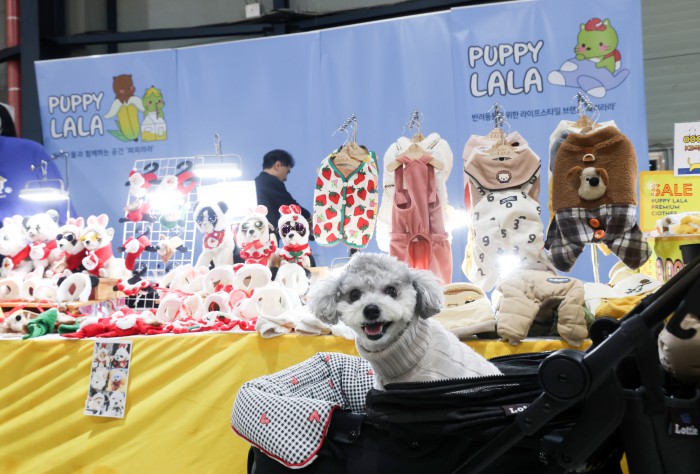 [서울=뉴스핌] 최지환 기자 = 12일 오후 서울 강남구 세텍에서 열린 크리스마스 서울 펫쇼에서 관람객들이 반려견과 함께 전시장을 둘러보고 있다. 2025.12.12 choipix16@newspim.com