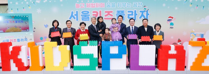 [서울=뉴스핌] 류기찬 기자 = 오세훈 서울시장 등 참석자들이 12일 오후 서울 강서구 서울키즈플라자에서 열린 ‘서울키즈플라자 개관식’에서 기념촬영을 하고 있다. 서울 키즈플라자는 놀이, 돌봄, 마음건강 기능을 한 건물 안에 집약시킨 통합 거점 시설로, 지역 내 어린이 시설 등과 유기적으로 연계해 아이들의 건강한 성장을 지원하고 부모의 양육 부담을 덜어주는 공간이다. 2025.12.12 ryuchan0925@newspim.com