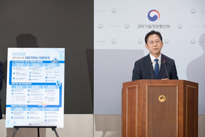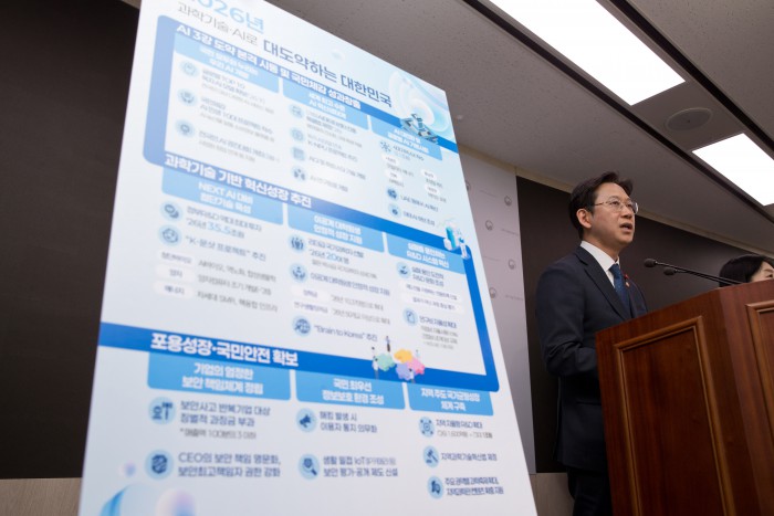 [서울=뉴스핌] 배경훈 부총리 겸 과학기술정보통신부 장관이 12일 정부세종청사 기자실에서 '2026년도 과기정통부 업무계획 보고' 관련 브리핑을 하고 있다. [사진=과학기술정보통신부] 2025.12.12 photo@newspim.com