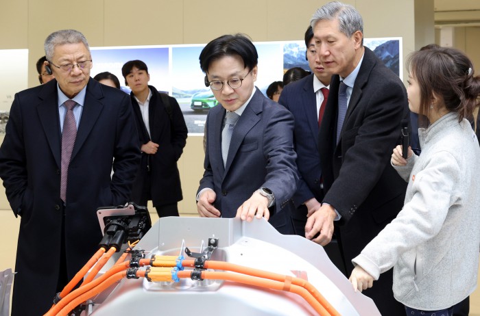 [서울=뉴스핌] 김정관 산업통상부 장관은 11일(현지시간) 중국 베이징 샤오미 전기차 공장을 방문해 전기차 생산공정을 둘러보고 있다. [사진=산업통상부] 2025.12.12 photo@newspim.com