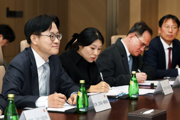 [서울=뉴스핌] 김정관 산업통상부 장관이 11일(현지시간) 중국 베이징 샤오미 전기차 공장을 방문해 관계자들과 간담회를 하고 있다. [사진=산업통상부] 2025.12.12 photo@newspim.com