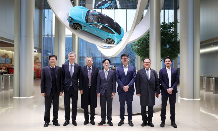 [서울=뉴스핌] 김정관 산업통상부 장관이 11일(현지시간) 중국 베이징 샤오미 전기차 공장을 방문해 관계자들과 기념촬영을 하고 있다. [사진=산업통상부] 2025.12.12 photo@newspim.com