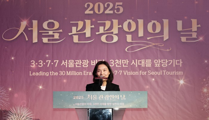 [서울=뉴스핌] 양윤모 기자 = 최호정 서울시의회 의장이 12일 오후 서초구 세빛섬 플로팅 아일랜드에서 개최된 '2025 서울관광인의 날 및 서울관광대상 시상식' 행사에 참석해 축사를 하고 있다. 2025.12.12 yym58@newspim.com