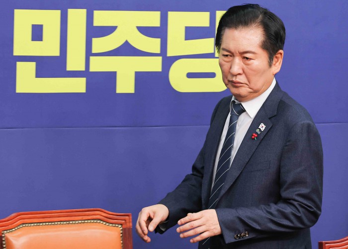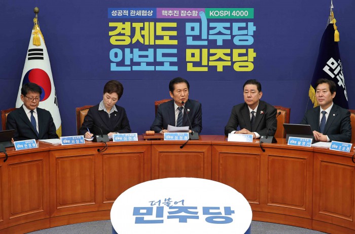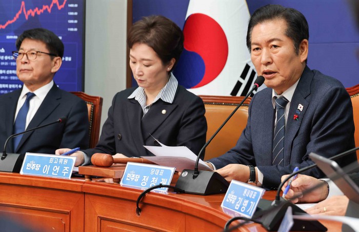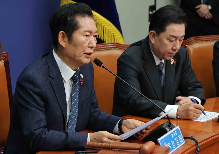 [서울=뉴스핌] 윤창빈 기자 = 정청래 더불어민주당 대표가 15일 서울 여의도 국회에서 열린 최고위원회의에 참석하고 있다. 2025.12.15 pangbin@newspim.com