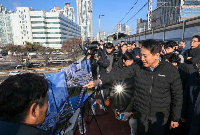 [서울=뉴스핌] 양윤모 기자 = 오세훈 서울시장이 15일 오전 광진구 구의동 동서울터미널을 방문 '동서울터미널 현대화사업' 개발대상지를 점검하고 있다.