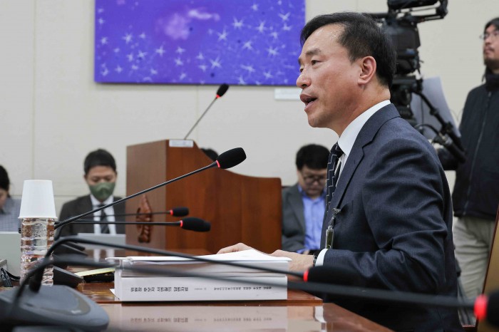 [서울=뉴스핌] 윤창빈 기자 = 김종철 방송미디어통신위원장 후보자가 16일 서울 여의도 국회 과학기술정보방송통신위원회 전체회의에서 열린 인사청문회에서 모두발언을 하고 있다. 2025.12.16 pangbin@newspim.com