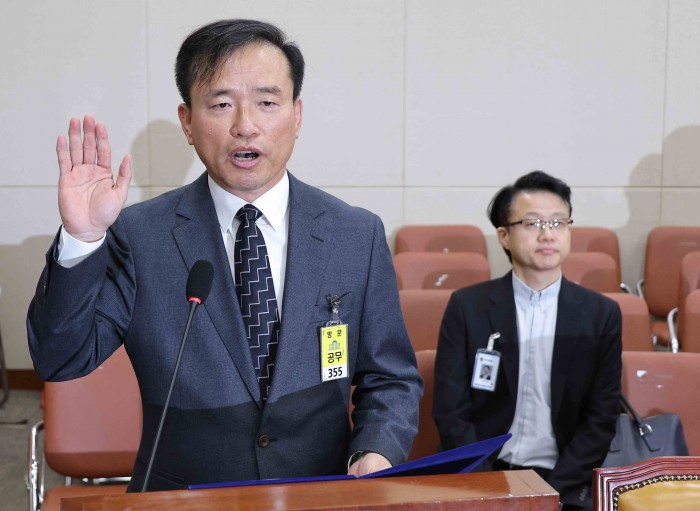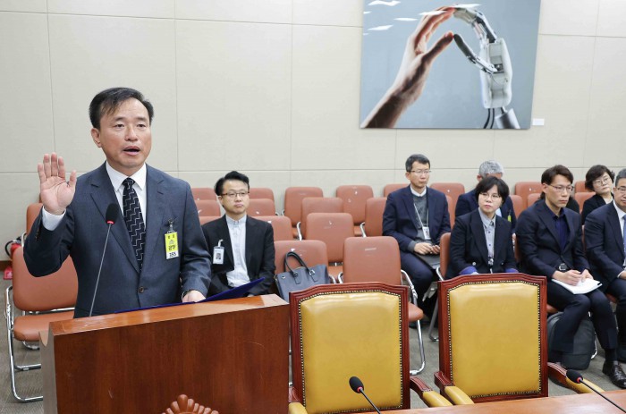 [서울=뉴스핌] 윤창빈 기자 = 김종철 방송미디어통신위원장 후보자가 16일 서울 여의도 국회 과학기술정보방송통신위원회 전체회의에서 열린 인사청문회에서 선서를 하고 있다. 2025.12.16 pangbin@newspim.com