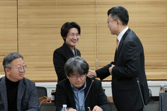 [서울=뉴스핌] 이길동 기자 = 최은옥 교육부 차관이 16일 서울 종로구 정부서울청사에서 열린 제1차 인공지능(AI) 인재양성 추진단 회의에서 참석들과 인사를 하고 있다. 2025.12.16 gdlee@newspim.com